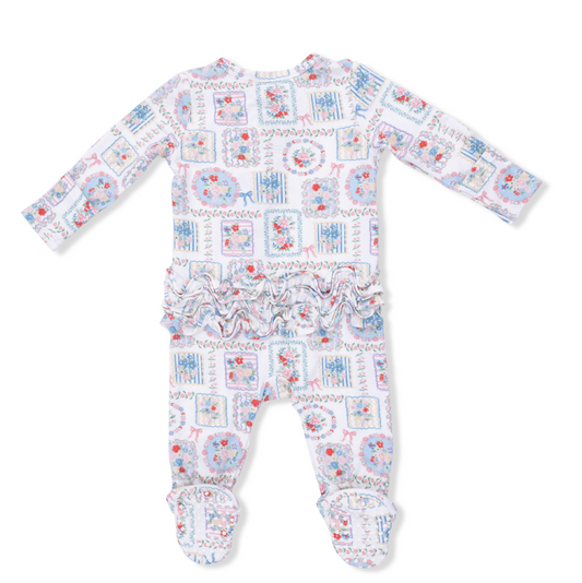 Julep's Floral Patchwork - 2 Way Ruffle Back Zipper Footie