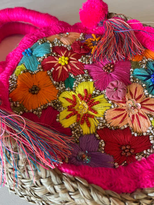 Round Garden Pink Woven Bag
