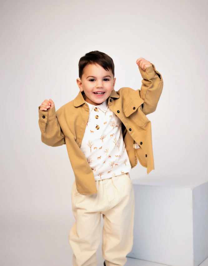 Upgrade your little one's fall/winter wardrobe with the Dakota Denim Shacket. The perfect addition to any stylish outfit, this neutral-colored beige shacket or beautiful alpine cocoa will keep them warm and in style all season long. Don't miss out on this must-have addition to your child's closet!