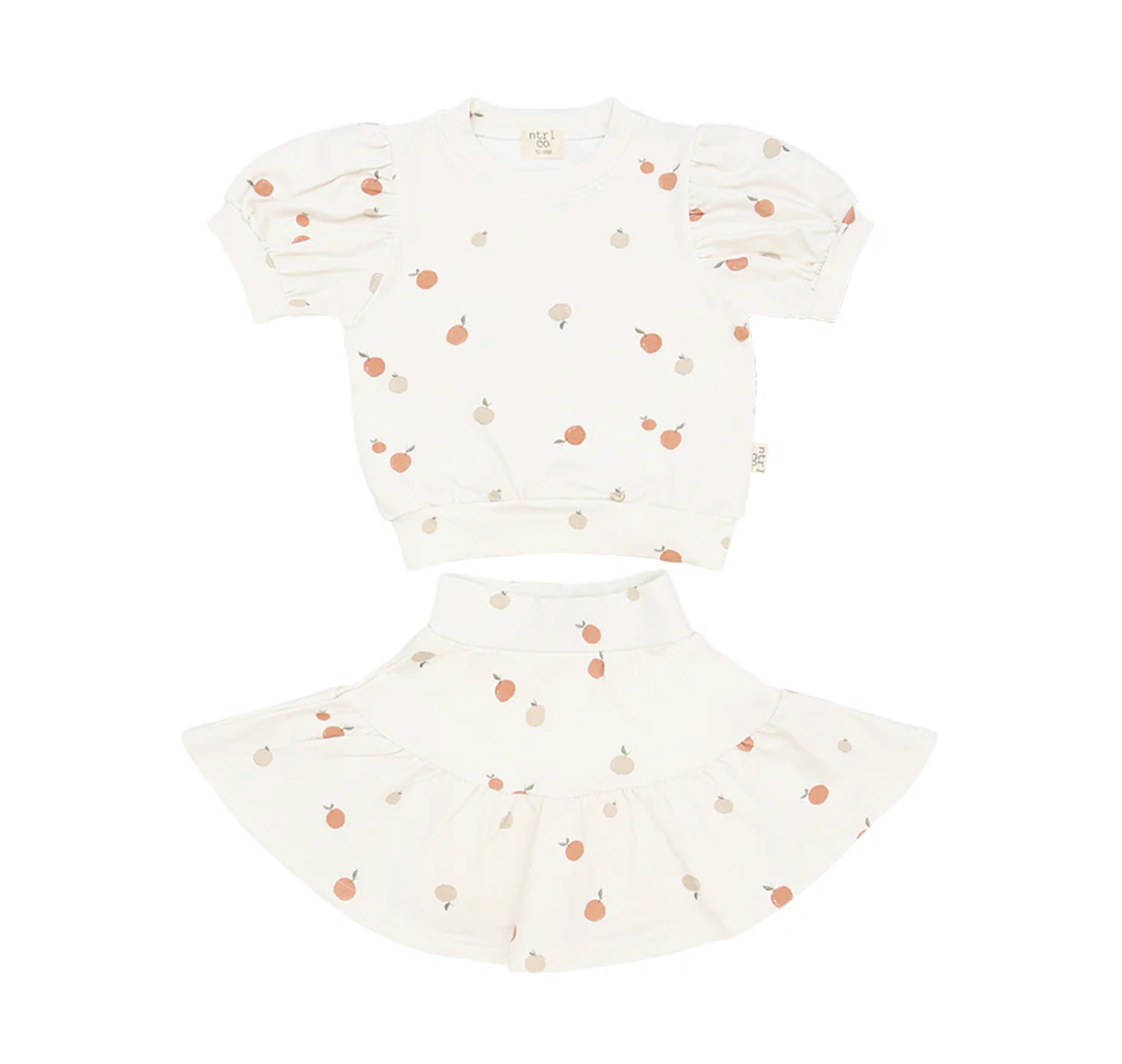 Get ready to spin and swirl with our "Apple Of My Eye" skirt set. Made with organic cotton, this perfect back to school outfit is sure to be your little one's favorite. Let her twirl and play in style with this girly spin on a classic look.