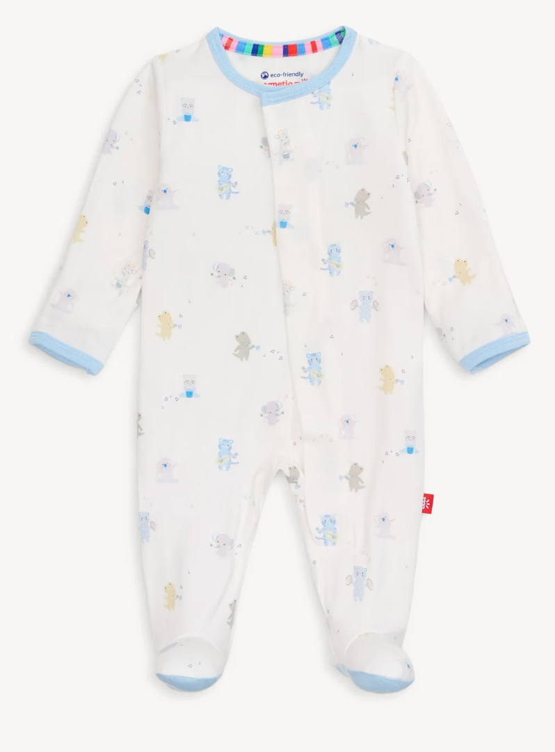 Our modal Magnetic Footie, designed with magnetic closures, is a quick and quiet lifesaver for all-day and middle-of-the-night diaper changes—that's up to 12 times a day (!). Made from sustainable modal, it's a silky-soft and temperature-regulating sleeper to keep your little one comfy from head to toe.