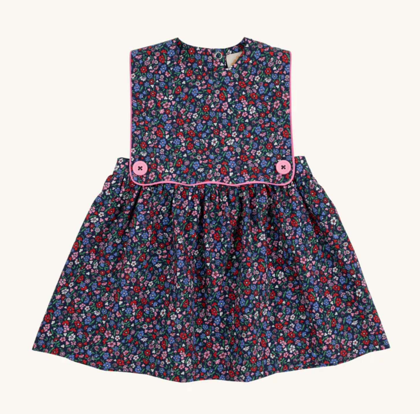 The Beaufort Bonnet Company Brady Button-In Dress is a must-have for your little lady. From the buttons to the Fairfax Farm Floral print, every little detail on this dress is vintage perfection. You'll love this dress to pieces!