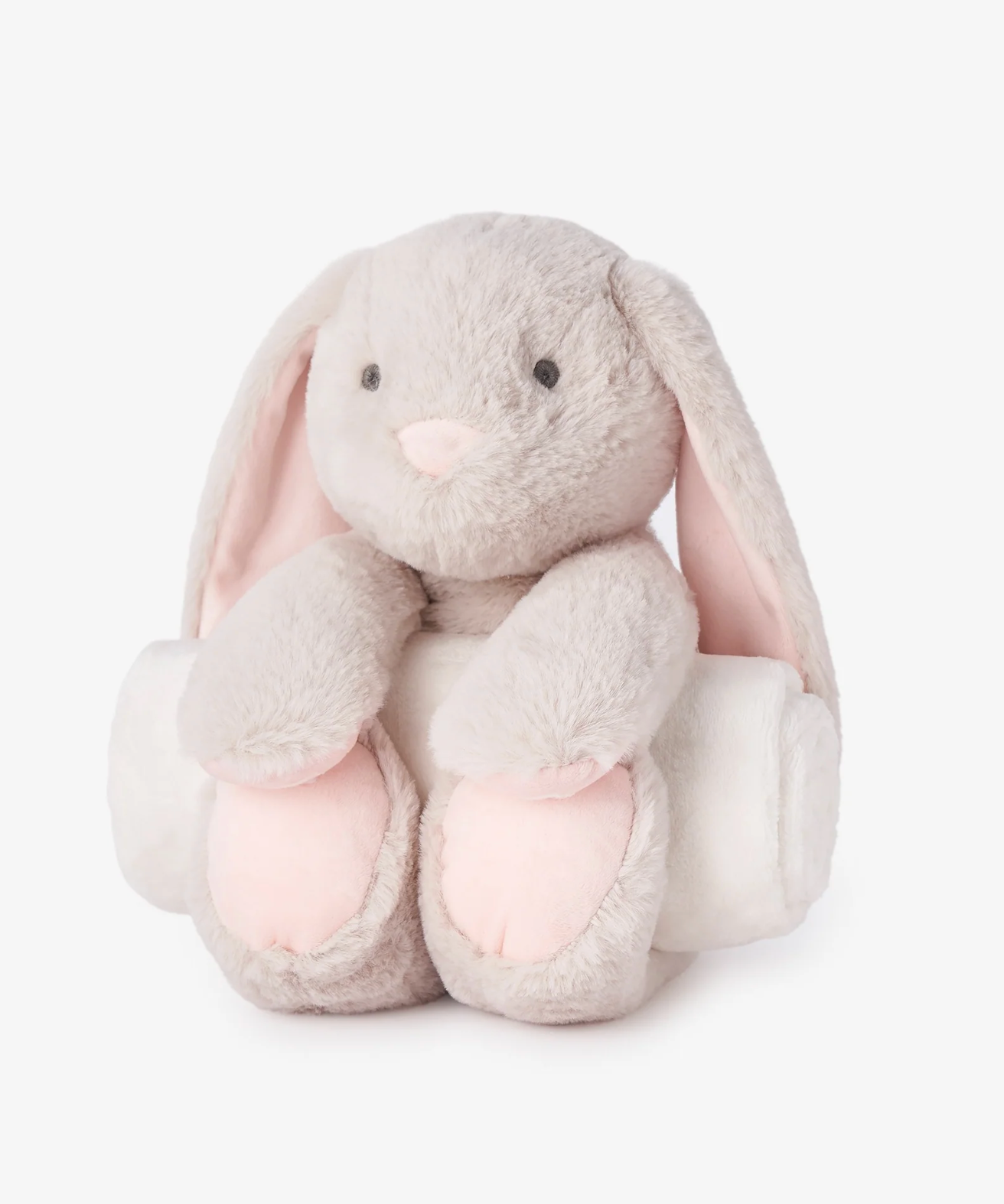 Bedtime huggie plush toys combine two items essential to every baby's needs: a toy & blanket! While the fleece baby blanket is perfect for warmth, comfort and security, the playful plush toy is super soft and perfect for squeezing, hugging and loving!
