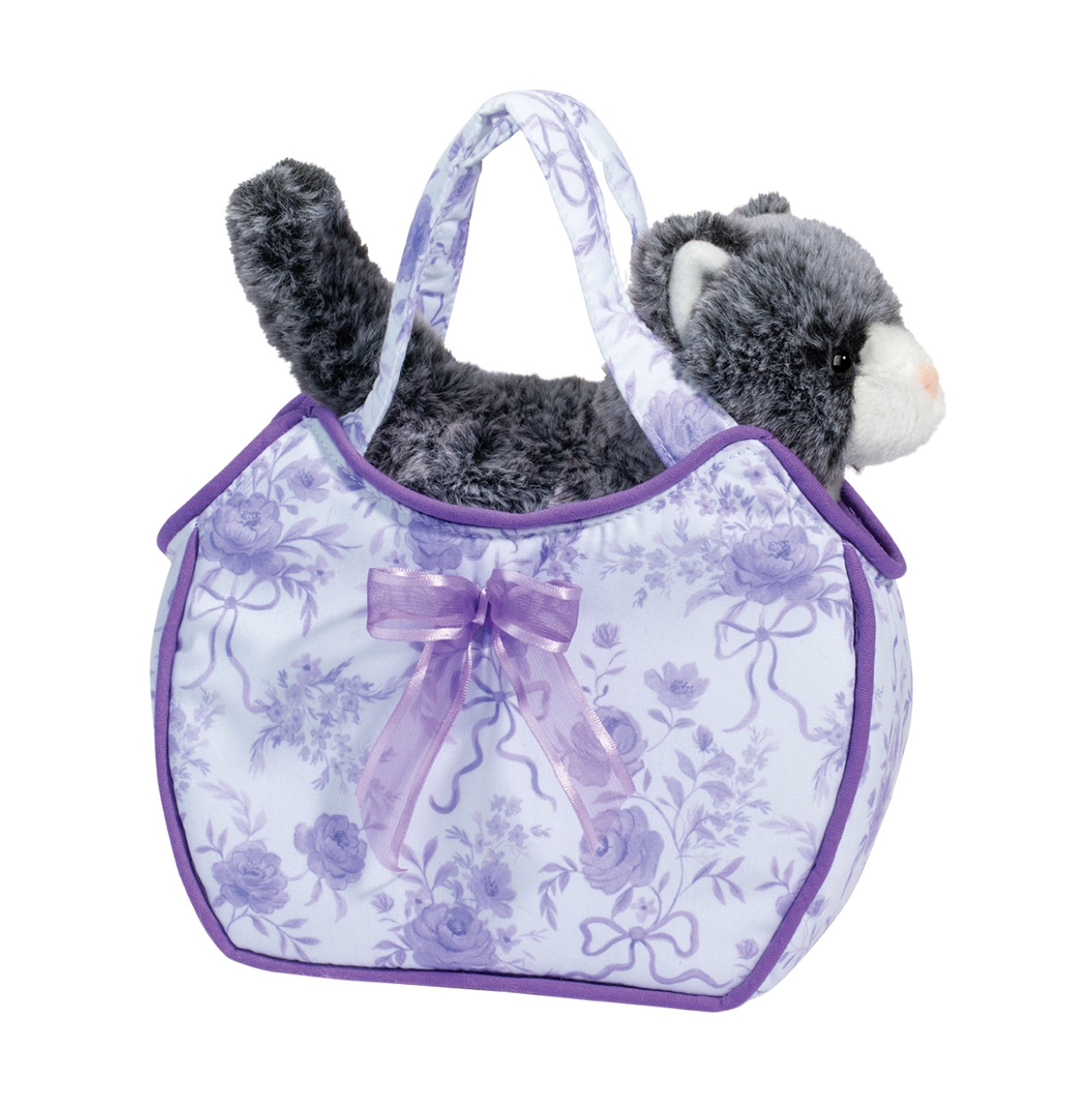 Cozily nested inside the purse is a sweet gray and white cat plush toy that makes this already enchanting purse even more special. The cat is soft and cuddly, with a fluffy gray coat and bright, expressive eyes that seem to radiate warmth and affection.