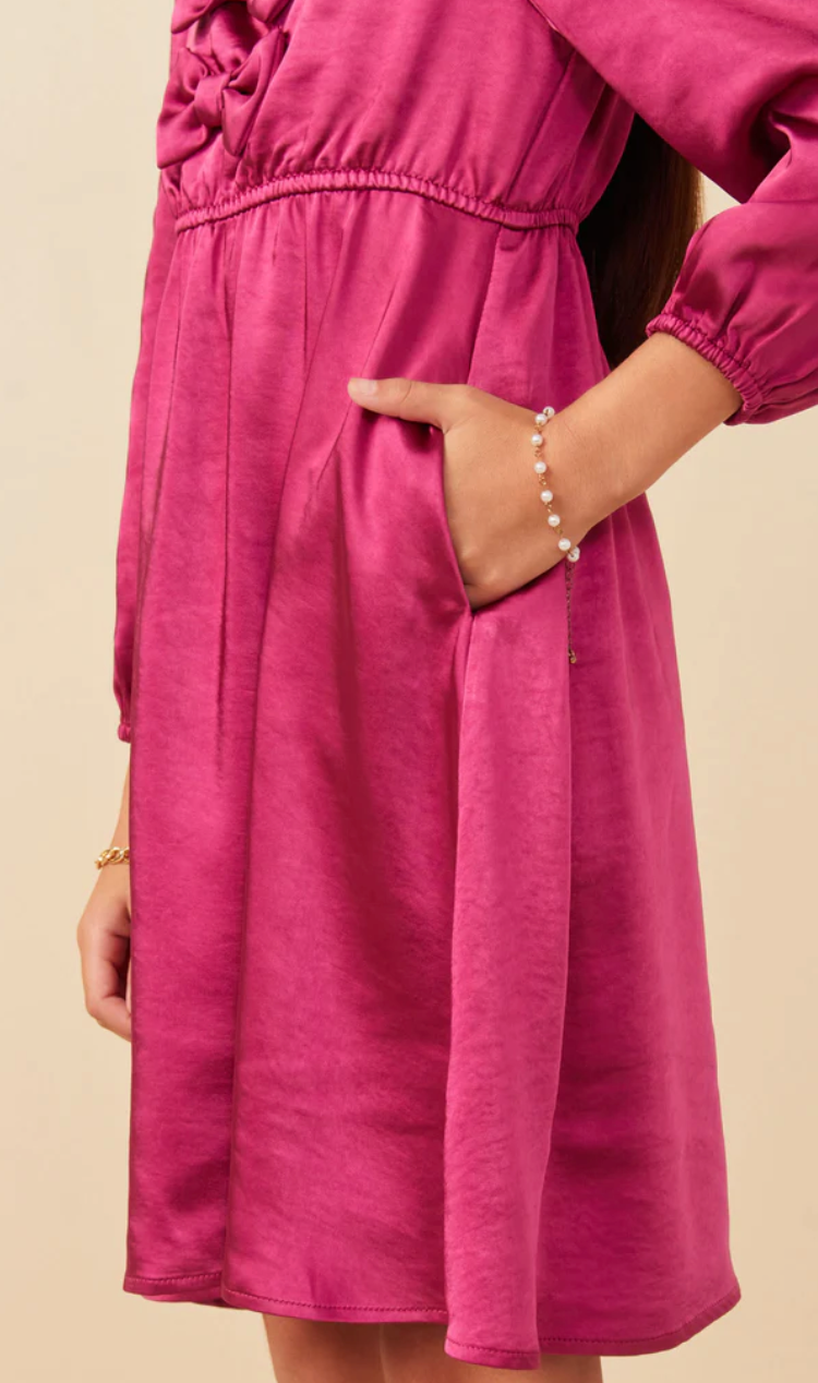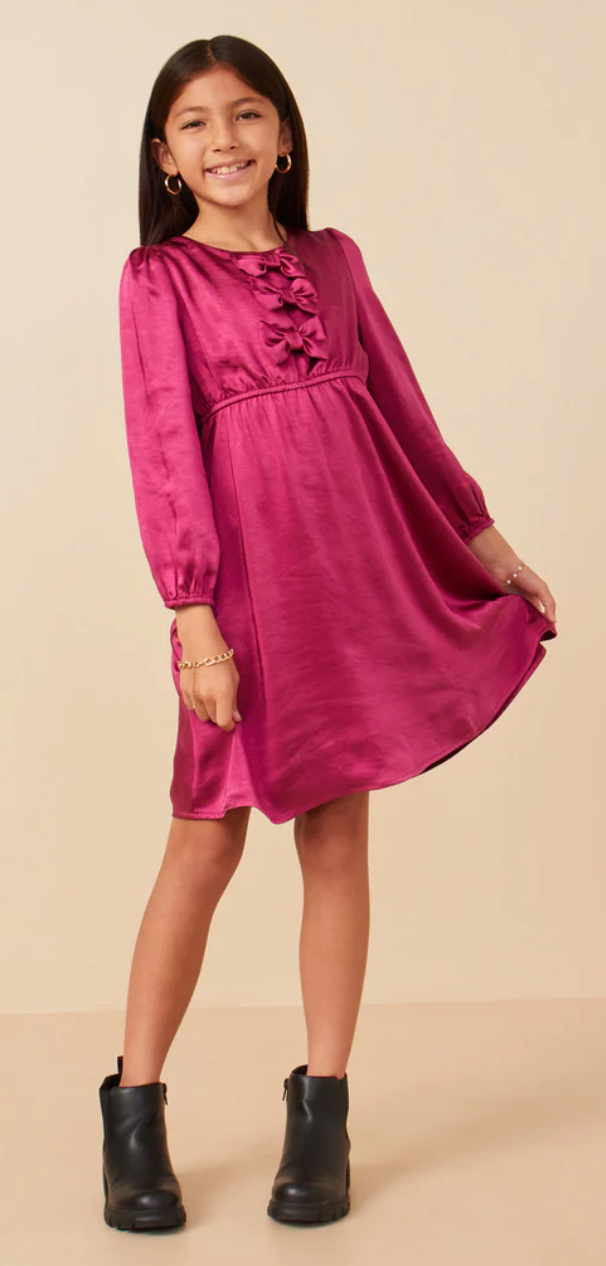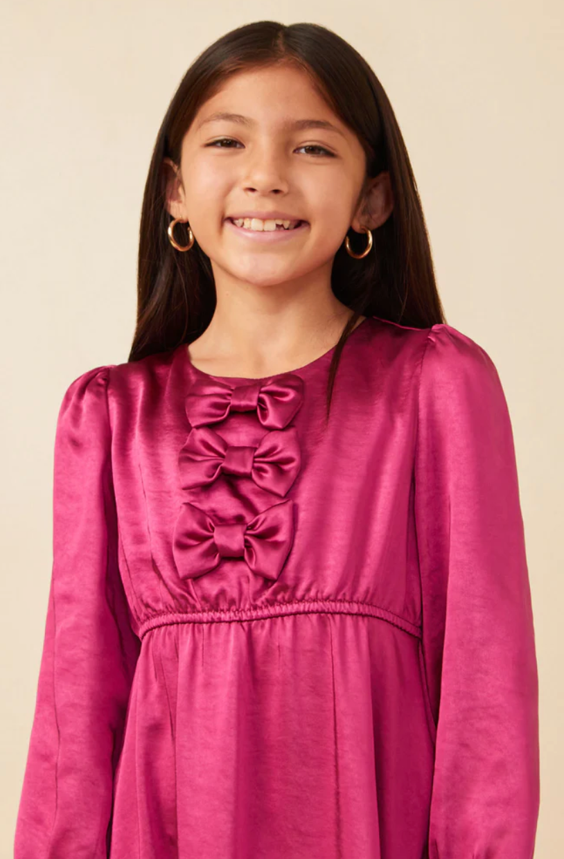 Girls Mini Bow Detail Long Sleeve Stain Dress