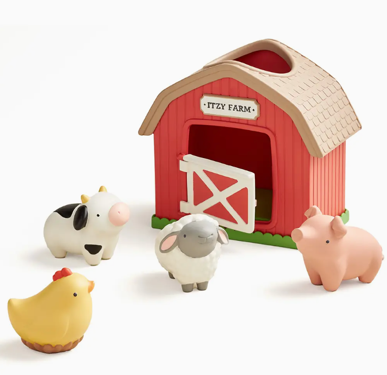 Little Farm, Big Fun! Learning is a blast with the charming Itzy Play Barn™ spill and fill activity toy! Featuring a mini barn with hinged door and rooftop opening plus four soft, squeezy animals, your babe’s imagination will go through the roof as they explore put-and-take play, learn object permanence, and create endless storytelling adventures.