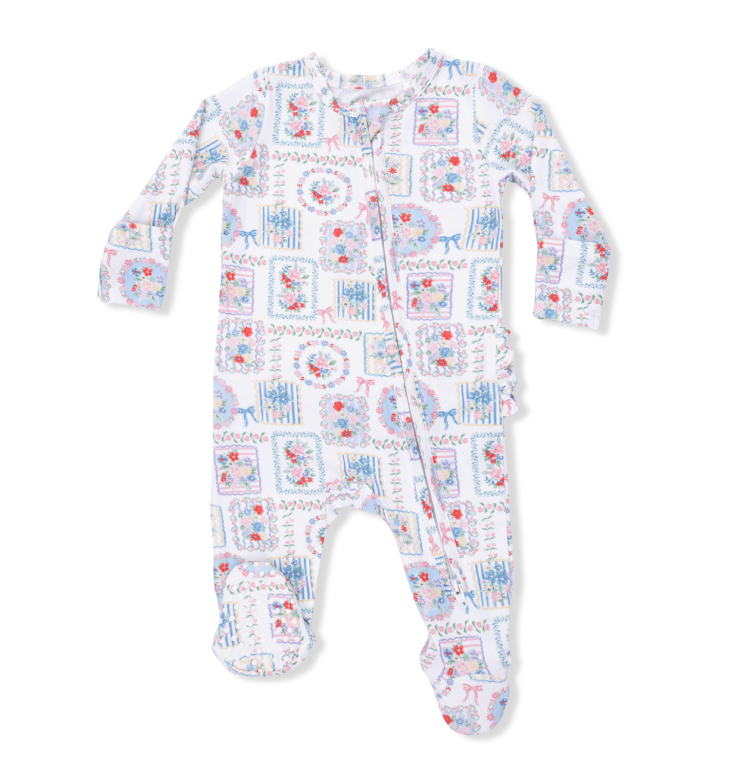 Julep's Floral Patchwork - 2 Way Ruffle Back Zipper Footie