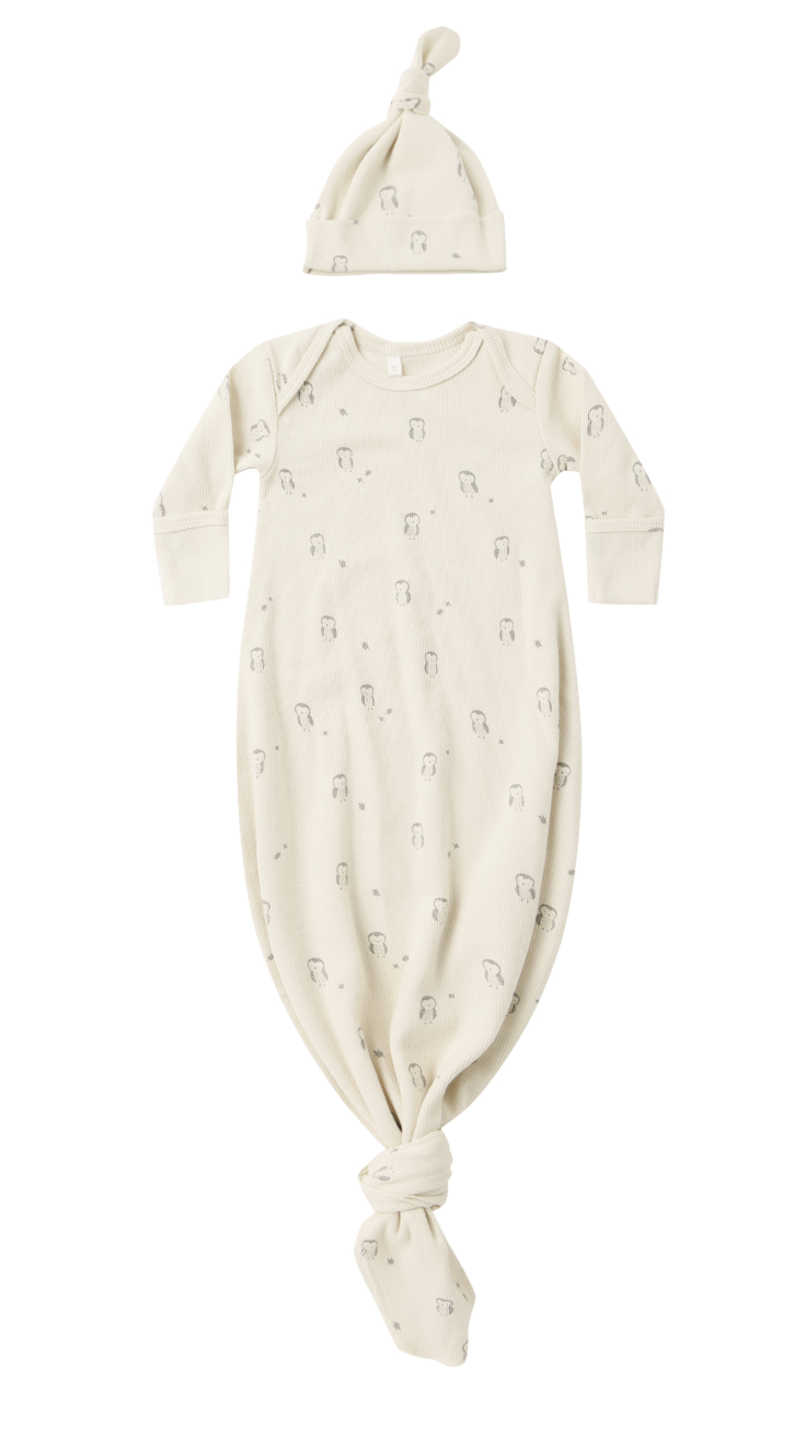 KNOTTED BABY GOWN + HAT SET || OWLS
