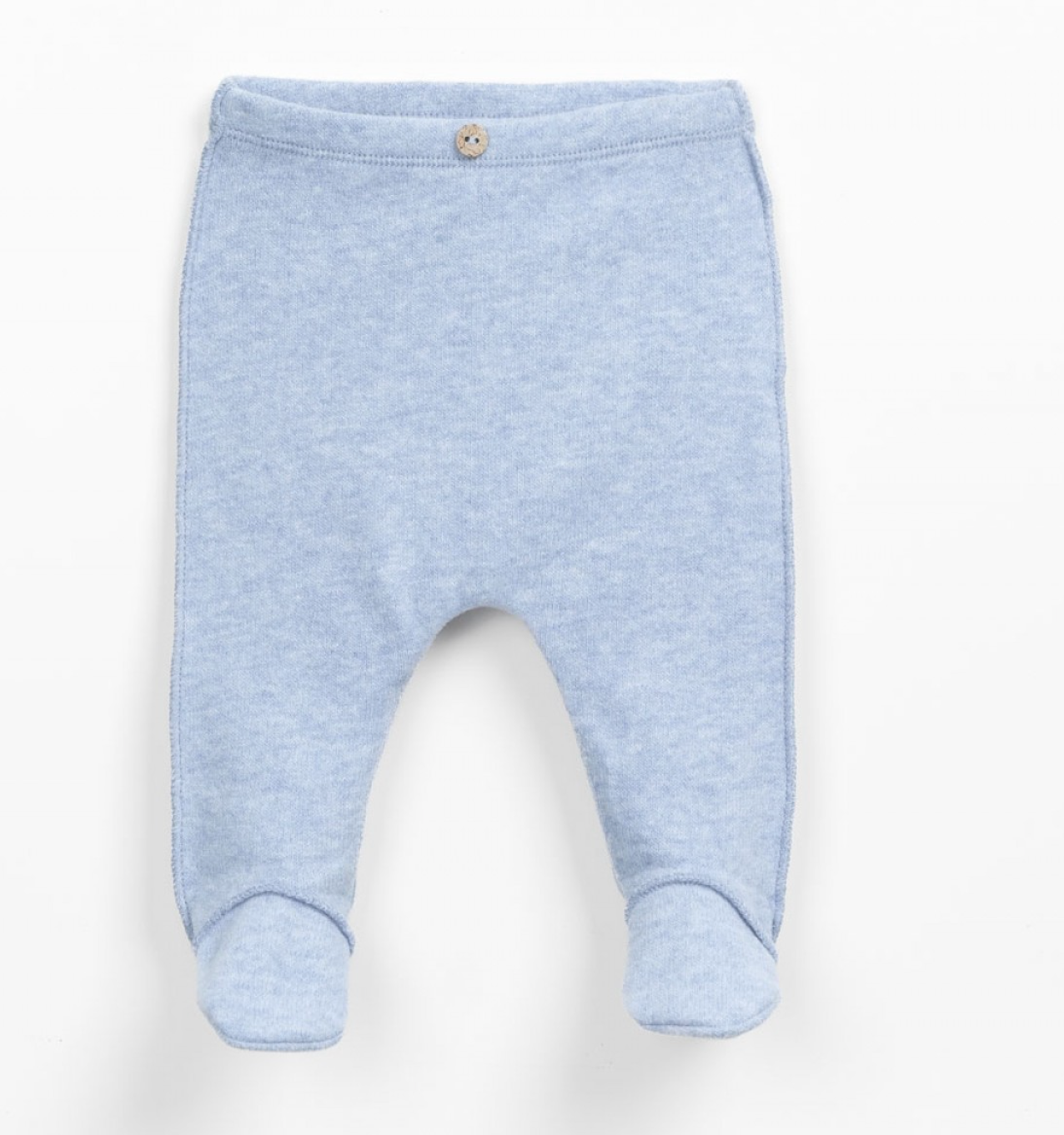 These jersey-stitch leggings are made of a mixture of recycled polyester and cotton, Albufeira colour. The one-piece model has an elastic waist and a decorative coconut button.
