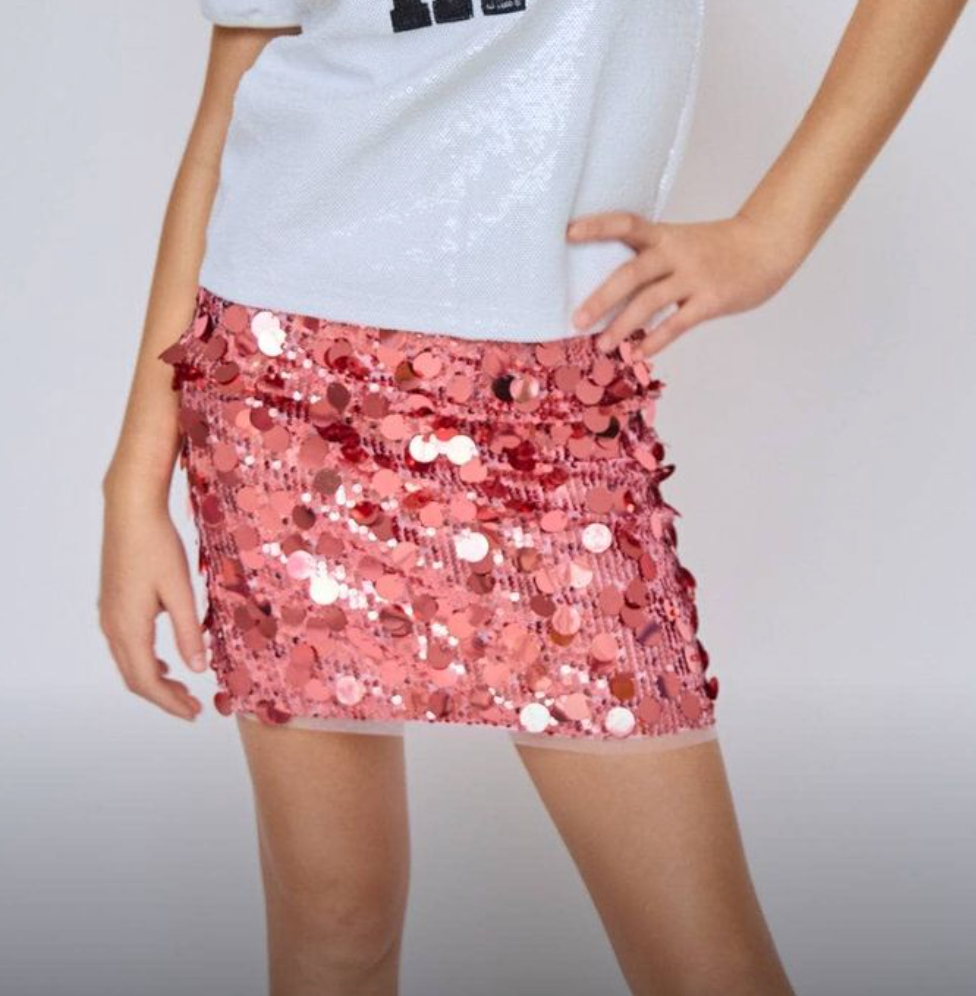 - Captivating and bold, this Magic Paillette Mini skirt is adorned with oversized sequins that shimmer and catch the light.