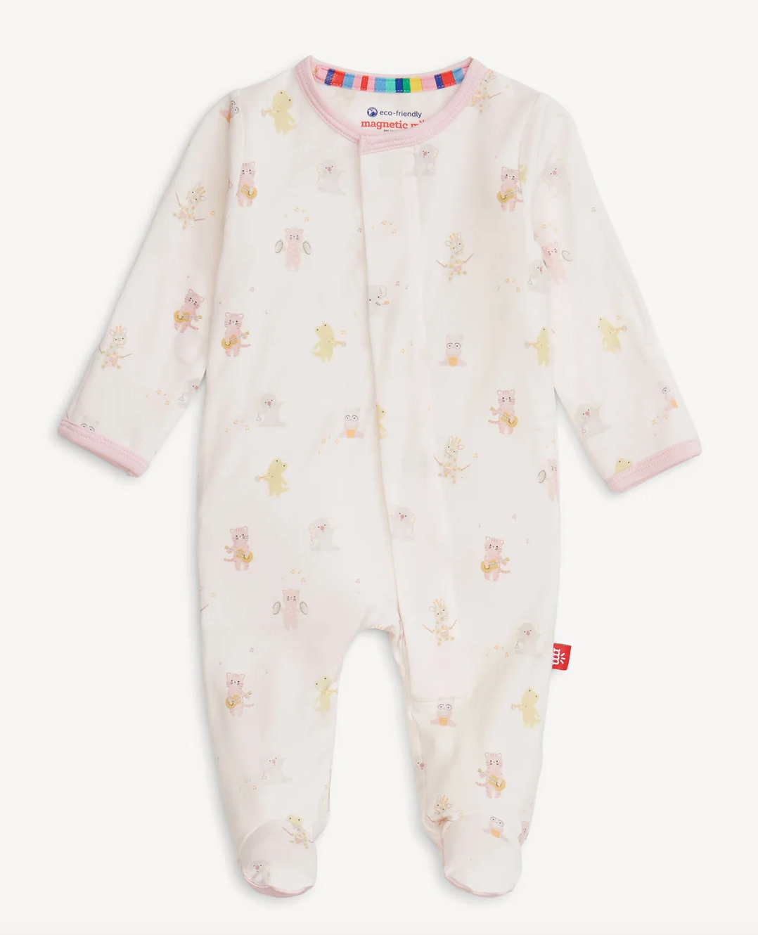 Our modal Magnetic Footie, designed with magnetic closures, is a quick and quiet lifesaver for all-day and middle-of-the-night diaper changes—that's up to 12 times a day (!). Made from sustainable modal, it's a silky-soft and temperature-regulating sleeper to keep your little one comfy from head to toe.
