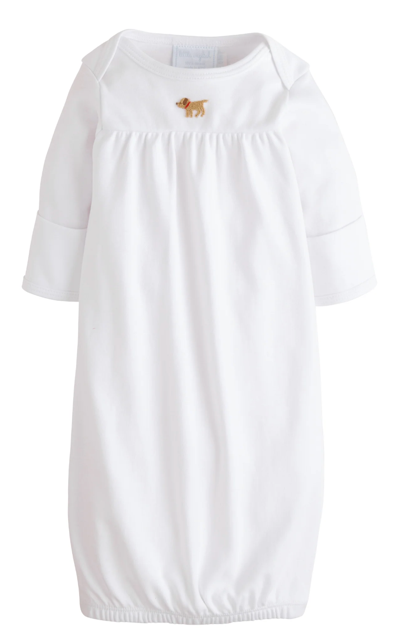 Dress your littlest one in our traditional newborn gowns! Made from the softest white pima cotton, this classic baby gown features darling lab pinpoint embroidery and is made for all the best baby snuggles!
