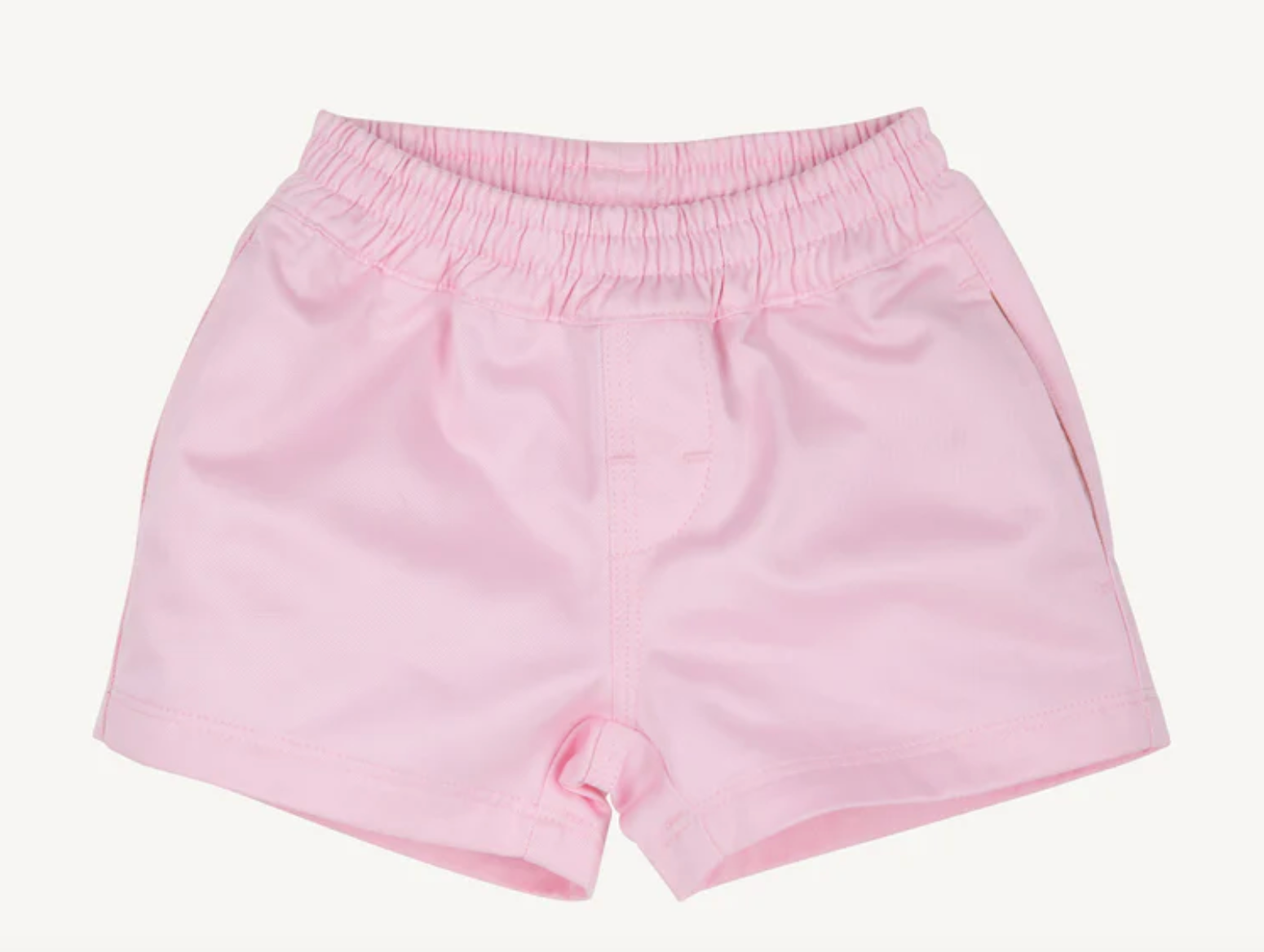 Our Sheffield Shorts in Palm Beach Pink with Mandeville Mint Stork are preppy and practical! The elastic waist makes diaper changes and potty training so much easier, and you'll love how put together he looks.