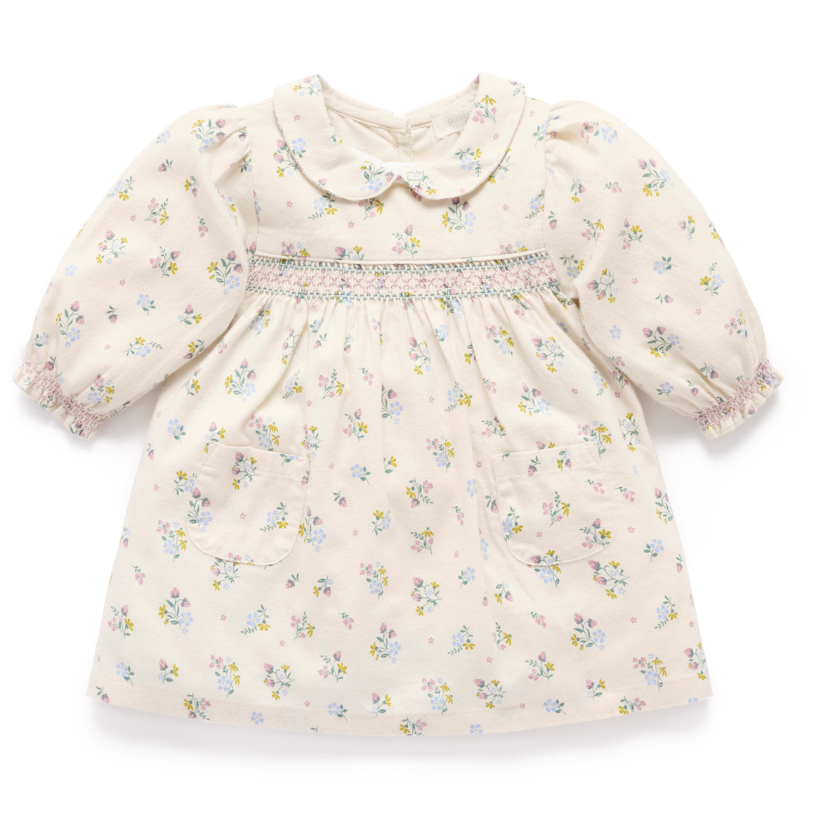 Our Strawberry Smocked Dress is a sweet style for those special occasions. Featuring a pretty all over winter floral print, gathered skirt and elasticised cuffs. Made from the softest 100% Organic Cotton flannelette with a brushed hand feel. Style with a cardigan, tights and beanie for a sweet winter outfit. All over floral print Gathered skirt and rounded collar Elasticised, smocked cuffs Buttons down the back for easy dressing Made from 100% Organic Cotton Flannelette