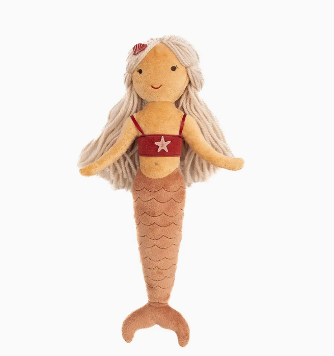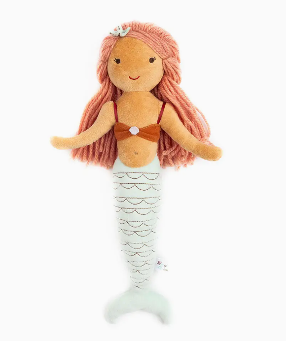 Meet Cordelia! Straight from our Making Waves mermaids print from Emerson and Friends, this delightful mermaid doll has swum up from the sea to play with you! Made of ultra soft polyester and stuffed with fluffy poly-fil, she is comfortable and safe for hugging, play, and sleep. A perfect gift for children of all ages!