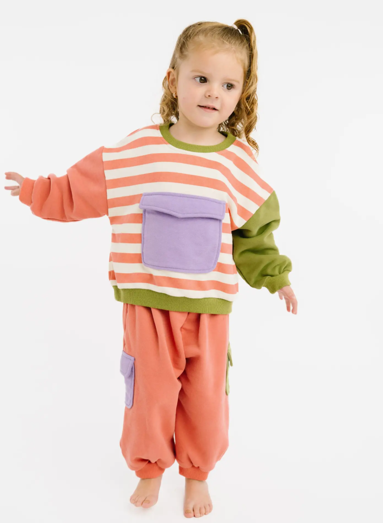 * Sweatsuit: This cozy, lightweight everyday set includes a stylish sweatshirt and matching pants, designed for ultimate comfort and style. * Fit: Oversized. Order your normal sized for an oversized look or size down for a more fitted look. * Fabric: Made from 95% cotton 5% spandex, growing softer with every wash for long-lasting comfort. * Comfort: Elastic waistband ensures a snug, secure fit, keeping your little one comfy all day long.